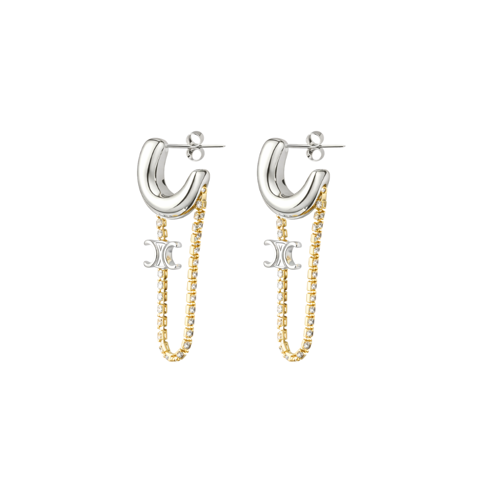 Celine Jewelry | Triomphe Hoop Earrings Silver Gold Crystals